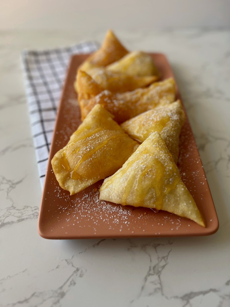 I actually got the recipe I used for the sopaipillas from a girl on Tik Tok (@marisolbenitez186) and her measurements in the video were: 2.5 cups flour, 2 tsp baking powder, 1 tsp salt, 3 tbsp oil, and 1.5 cups warm water. I ended up adding a lot more flour to this because I found that the dough was still way too sticky for me to work with. I’d recommend finding a recipe online to use if you ever try to make these!