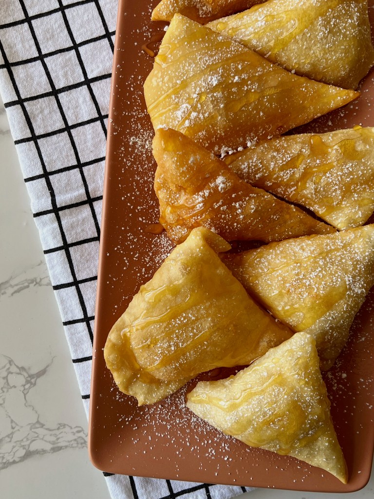Sopaipillas actually originated in New Mexico. New Mexico and Arizona share a lot of regional cultural cuisine, so while they do technically come from New Mexico, sopaipillas are still wildly popular in Arizona and are served all over the state. Sopaipillas are fried pieces of dough covered in powdered sugar and honey or cinnamon sugar. I did powdered sugar and honey because it seemed like the tastiest combo (it was) (probably).