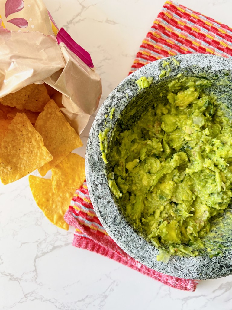 When the meat is all done, you’re going to ask someone to take two forks and shred it. You can do it yourself, but I personally hate the sound of two forks clanking against each other and have to go into another room while my husband does it. Time to fry! Take a burrito-sized flour tortilla and add shredded Monterey Jack and Pepper Jack cheese (bonus points if you shred it yourself – it’s meltier!) Then add your meat and roll it up like you would a normal burrito. Except this time, you’re going to submerge the burrito in some 375° vegetable oil for a few minutes until golden brown on each side. Let the fried chimichangas drain on some paper towels and add your favorite toppings. We kept it simple with tomatoes and a homemade guacamole made in my molcajete! I never use measurements when I make guac, but this time I’m pretty sure I used 4 small avocados, half a white onion, a handful of cilantro, a jalapeño, a garlic clove, lime juice, salt and just pounded it all together until it was pulverized — adding the avocados last so they retain some of their texture. This is the best way to make guac in my opinion!